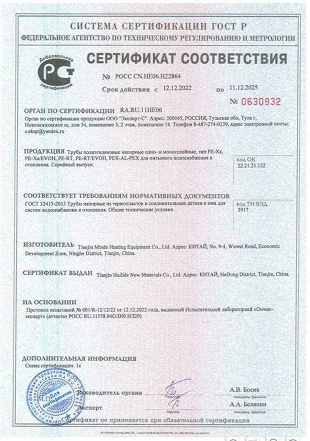 Tianjin Huilide New Materials est une société commerciale de Tianjin Minde Heating Equipment. L'entreprise est située dans la belle ville côtière de Tianjin. Couvrant une superficie de 10 000 mètres carrés, il dispose de 92 lignes de production de tuyaux PEXa avancées, 5 lignes de production de barrière à l'oxygène PEXa, 2 lignes de production de tuyaux PERT, 2 lignes de production de tuyaux PEX-Al-PERT et 10 moulages par injection. équipement de raccords de tuyauterie, avec une production annuelle de 100 millions de mètres de capacité de production de tubes.